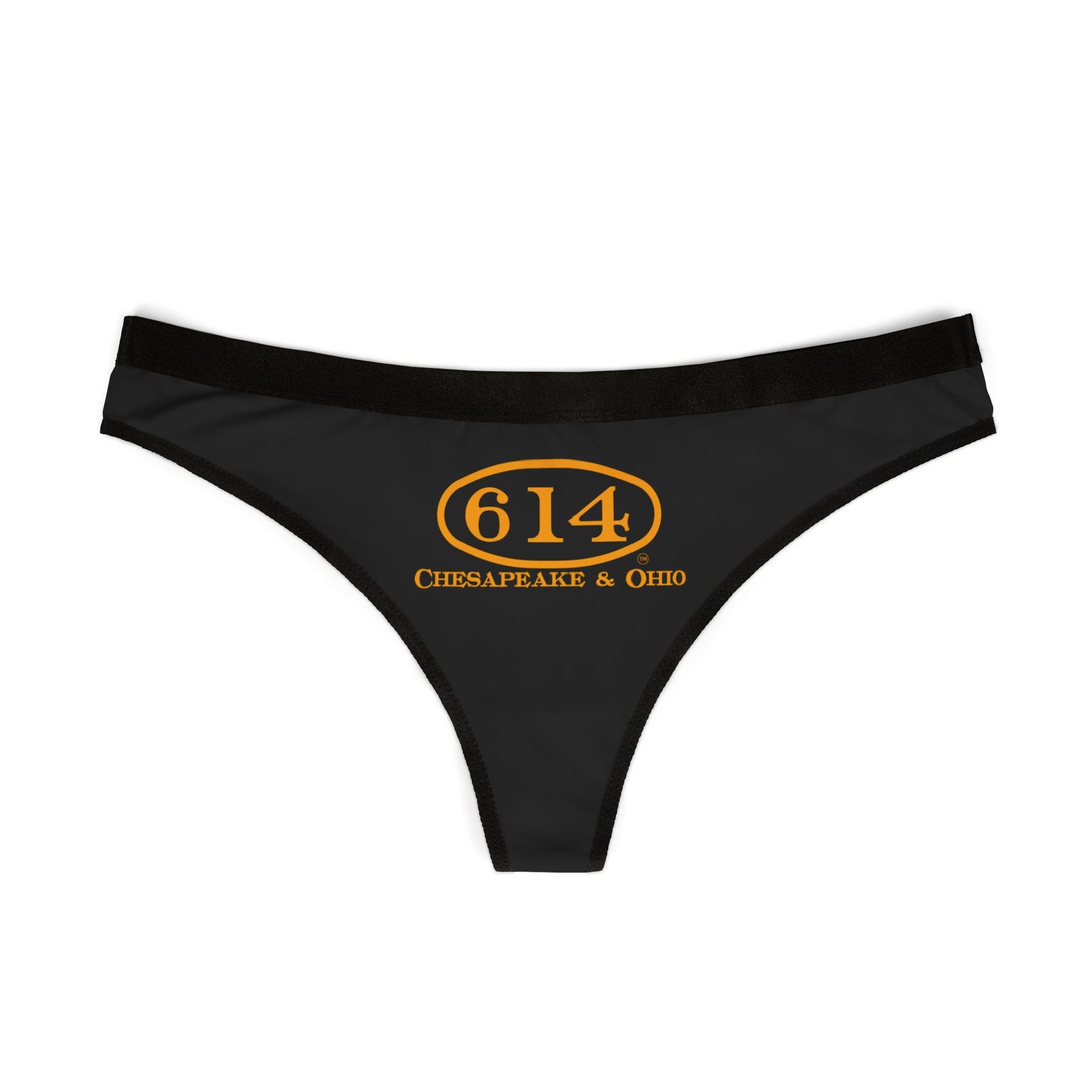 These sleek, black thongs carry a quiet hometown pride — a small 614 emblem in warm gold sits low on the front, whispering ‘Chesapeake & Ohio’ in retro lettering. Lightweight and slightly matte, the fabric moves with you thanks to four-way stretch and a soft elastic waist that stays smooth under clothes. Breathable, antimicrobial material keeps things fresh, while the minimal silhouette is made for days you want comfort and a little personal nod to home. Wear them under your favorite jeans or a fitted dress and let that subtle 614 detail be your private reminder of roots and routes traveled.