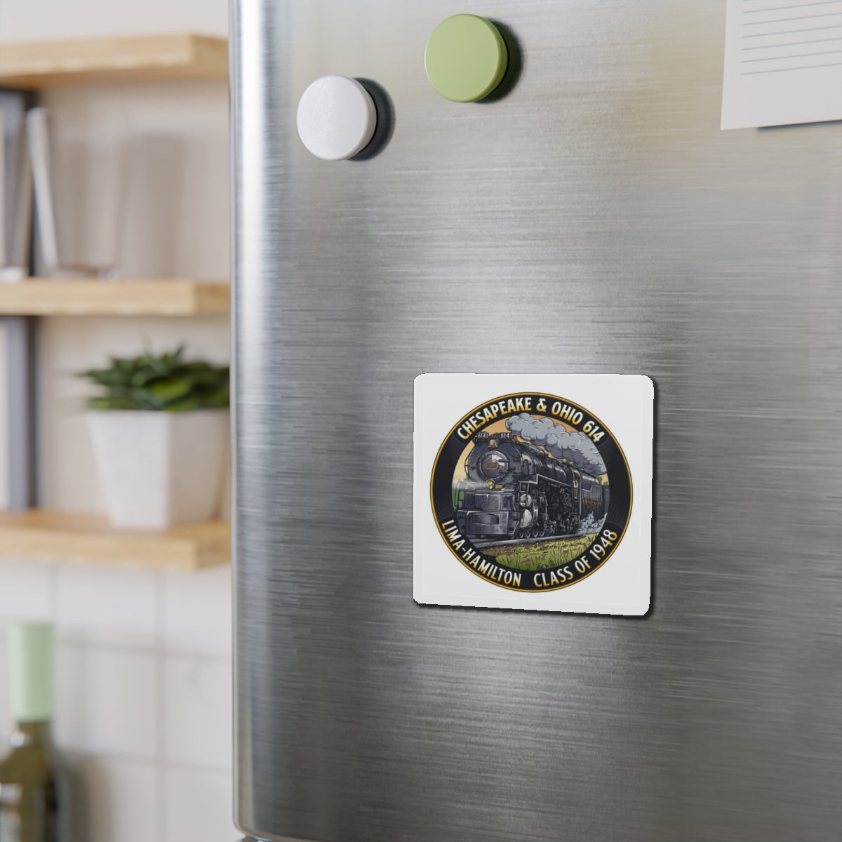 A sturdy, custom die-cut magnet that brings a slice of railroading pride to your fridge, locker, or steel board. The matte finish tones down glare while keeping every detail of the locomotive artwork crisp and vivid. Built on flexible vinyl with a black magnetic backing, it clings to metal surfaces and withstands everyday bumps and humidity — so your steam-era emblem stays bold whether on display in a workshop, kitchen, or sleep-away locker. Choose from five sizes to match the space you want to fill and let this little piece of nostalgia anchor your notes, photos, or ticket stubs with character.