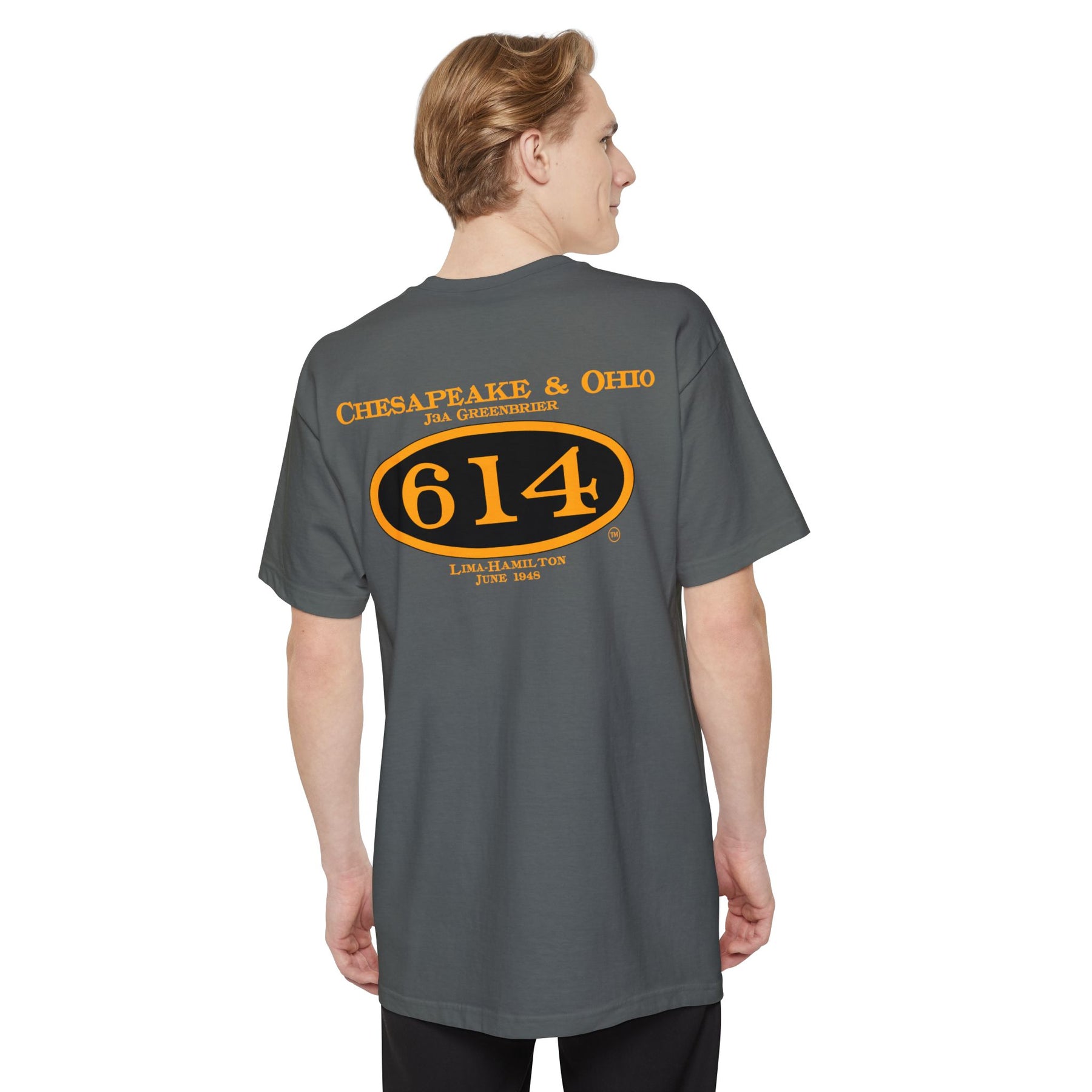 This relaxed, long-body tee wears like a friendly familiar—soft, roomy, and built to last. The front and back display a bold oval 614 insignia with ‘Chesapeake & Ohio 614’ lettering, a subtle nod to railroad heritage and local pride. It sits a little longer through the torso and sleeves, giving a vintage workshirt silhouette that layers easily over flannel or under a denim jacket. The midweight cotton has enough heft to drape well while remaining breathable for everyday wear. Expect clean seams and a tear-away label so the shirt feels comfortable against your skin from the first wear. Wear it to railfan meetups, weekend trips along old rail lines, or simply as a casual everyday shirt that quietly says where your loyalties lie.