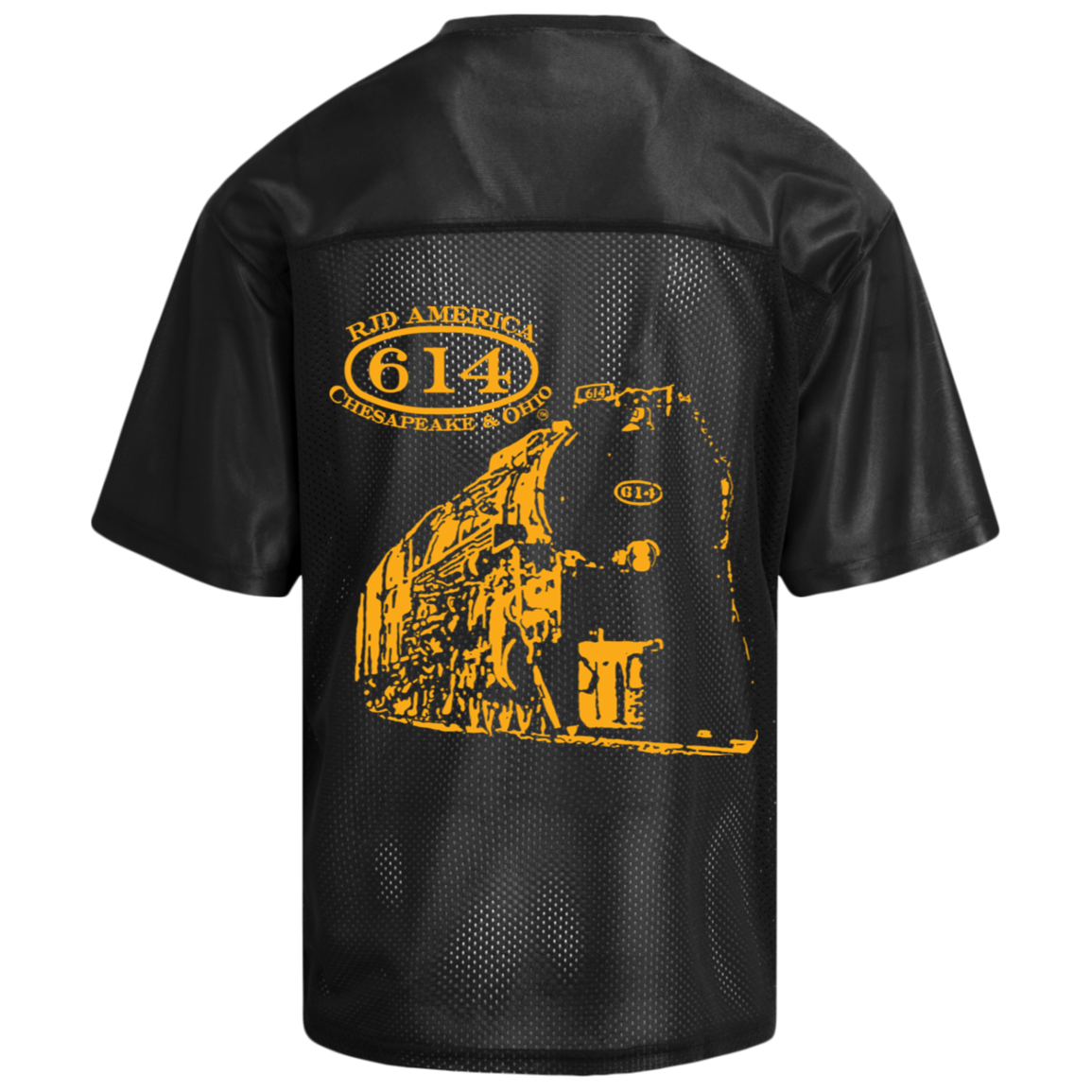 Show your railroad pride in athletic style with this Sport-Tek fan jersey featuring the iconic C&O 614 locomotive in bold Art Deco design. Built for performance with moisture-wicking technology and the heritage you're passionate about.