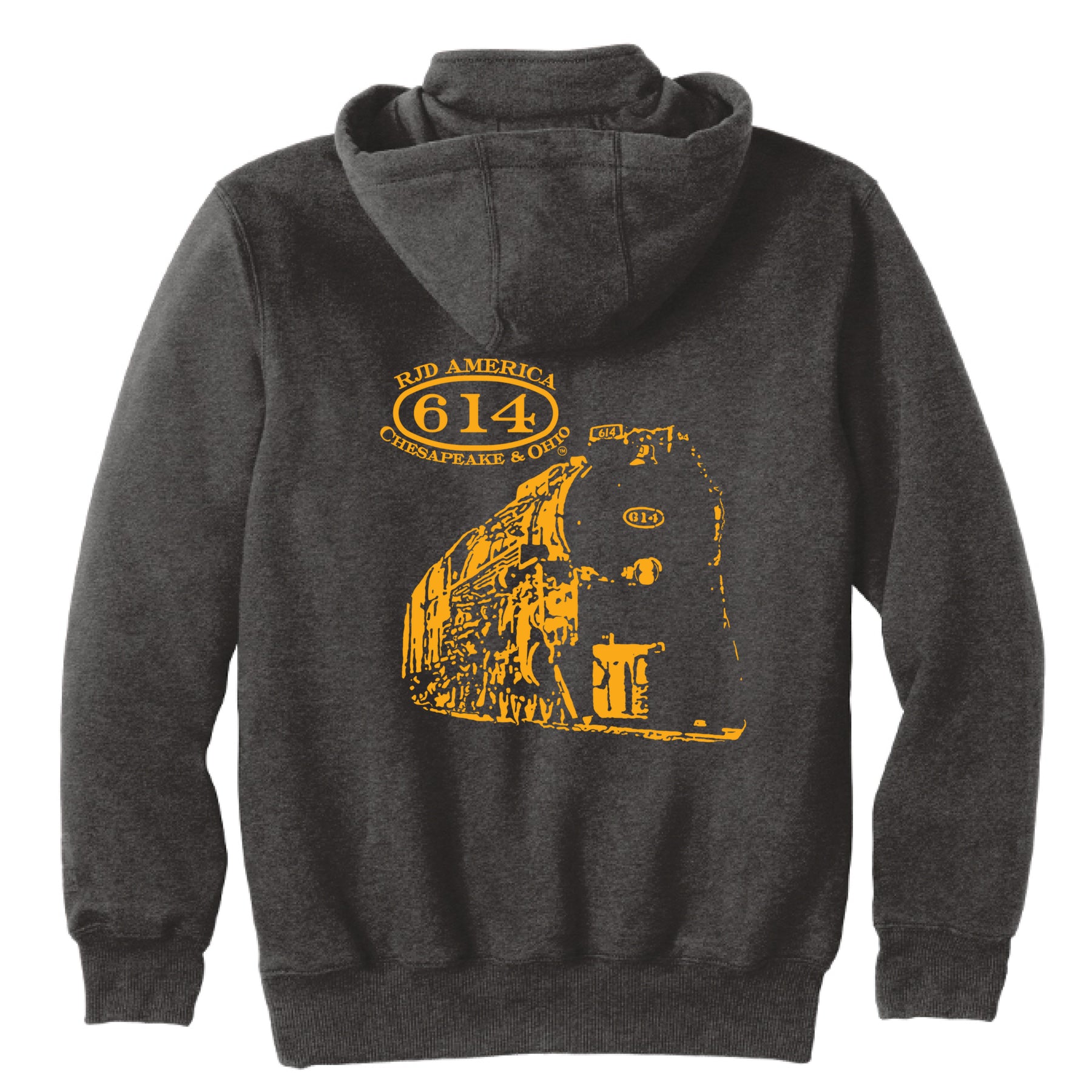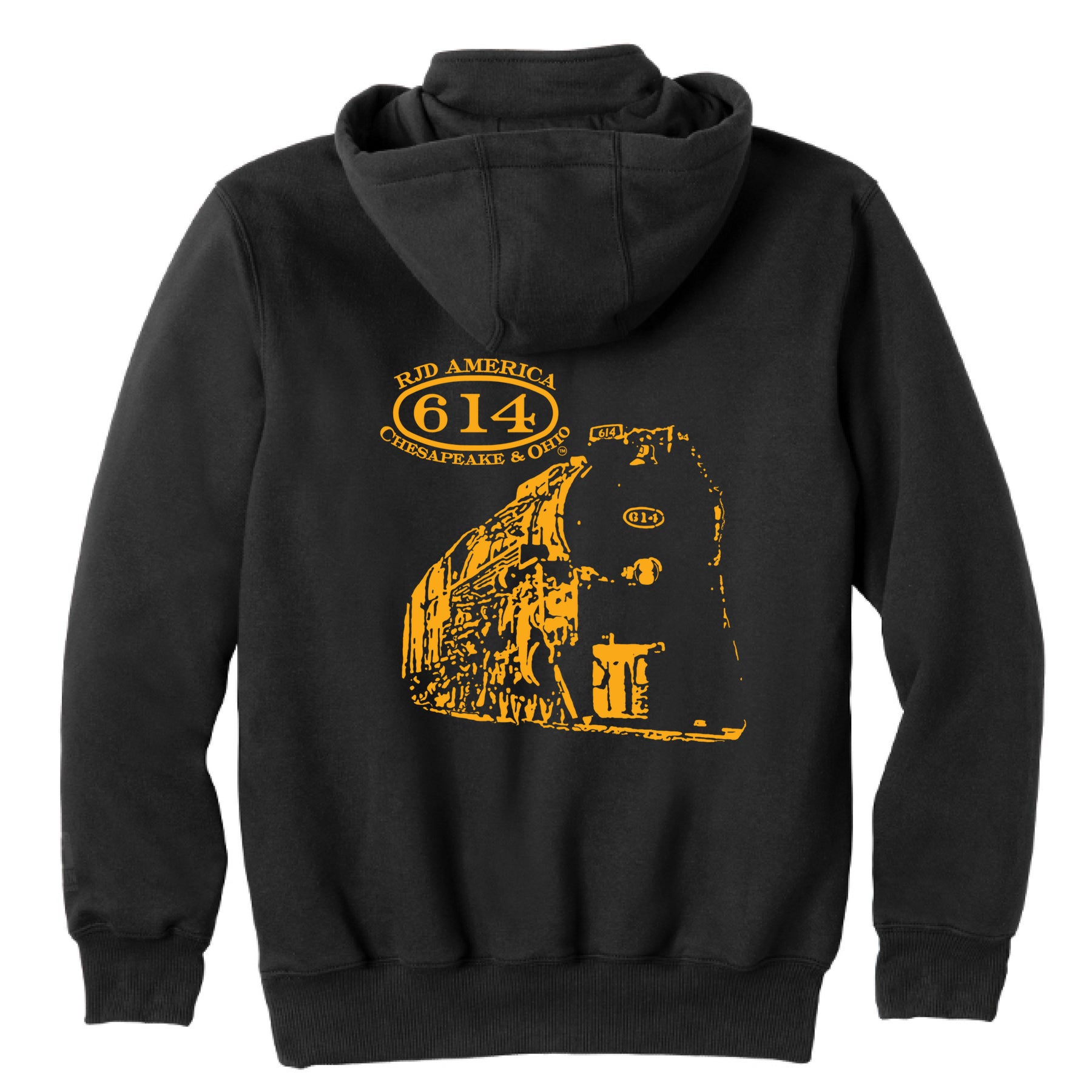 Conquer the elements while showcasing your railroad pride with this Carhartt Rain Defender Paxton heavyweight sweatshirt featuring the iconic C&O 614 locomotive in bold Art Deco design. Built to repel water and resist stains with the heritage you're passionate about.